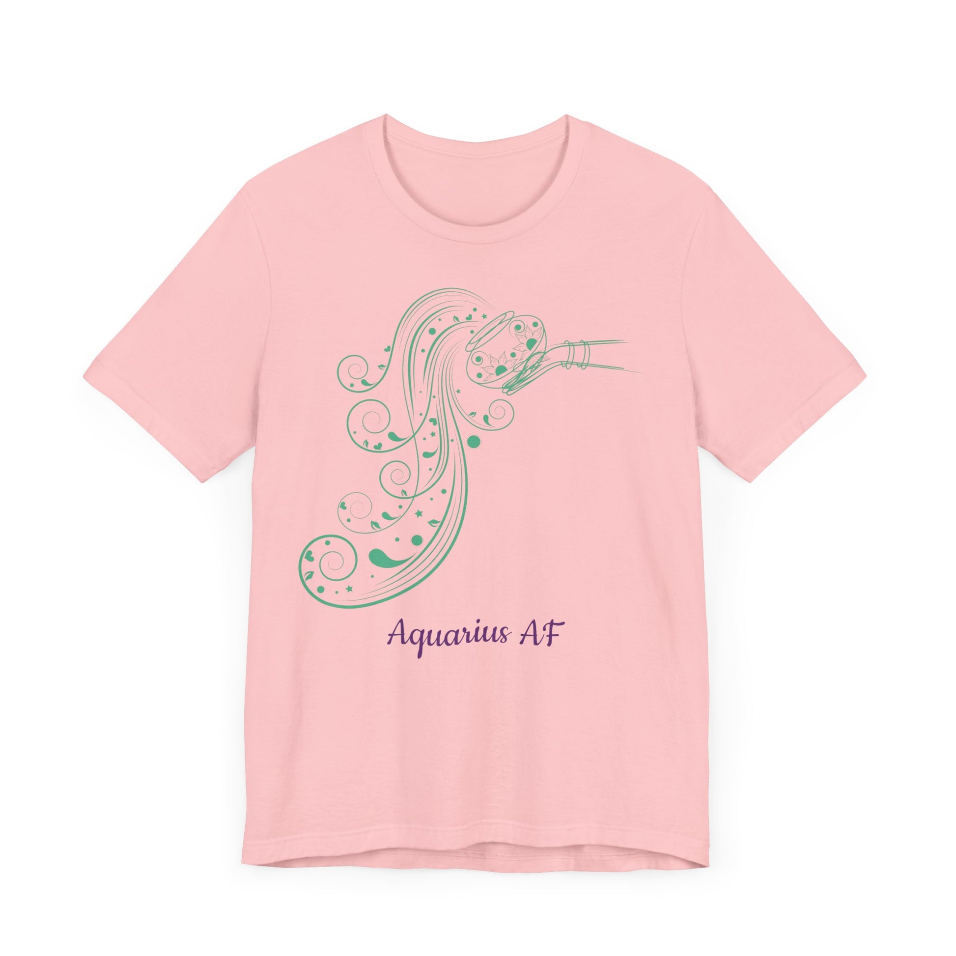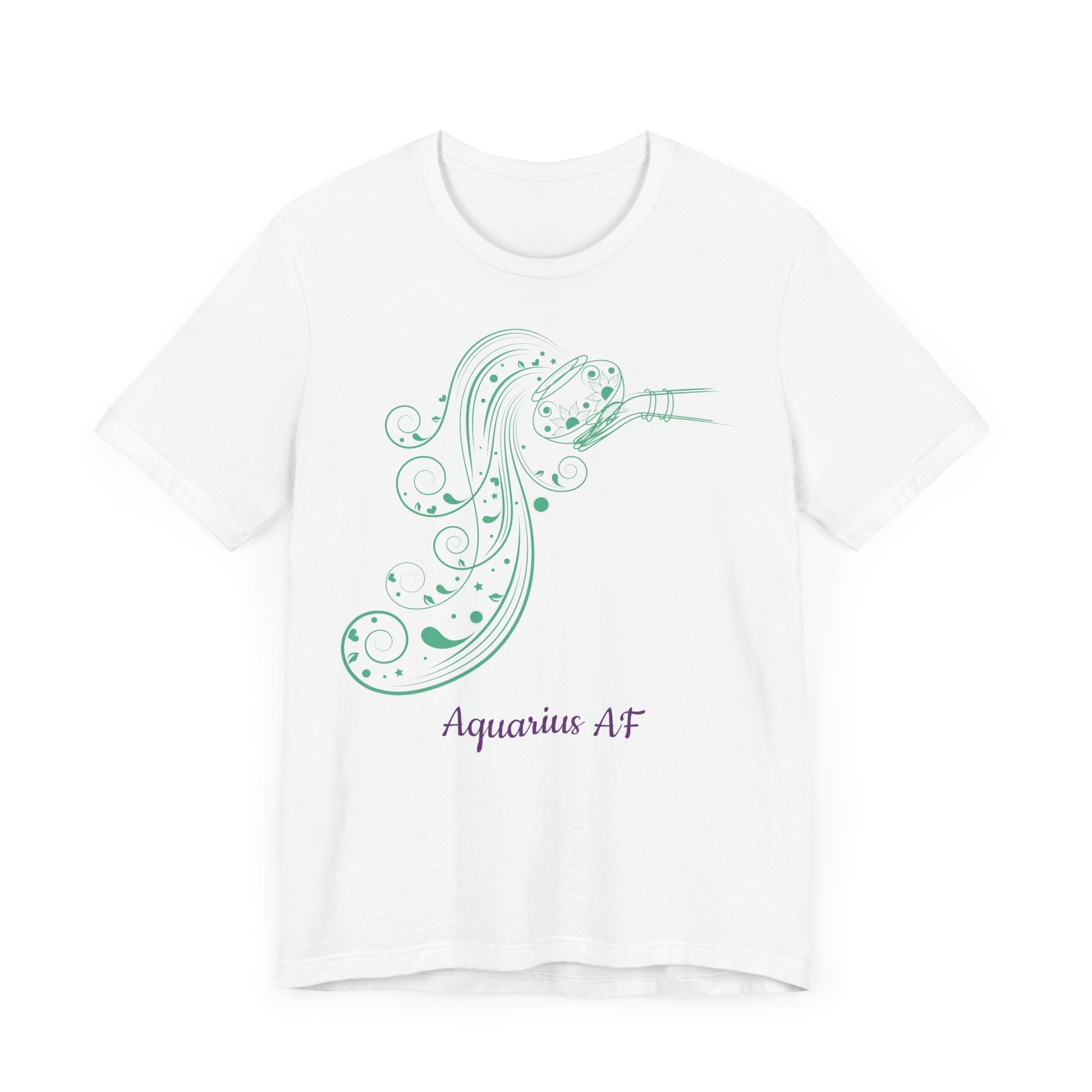 Aubergine and Green Aquarius AF T-Shirt | Fun Aquarius T-Shirt | Zodiac T-Shirt | Zodiac Sign Shirt | Astrology | Star Sign |Unisex Jersey Short Sleeve Tee