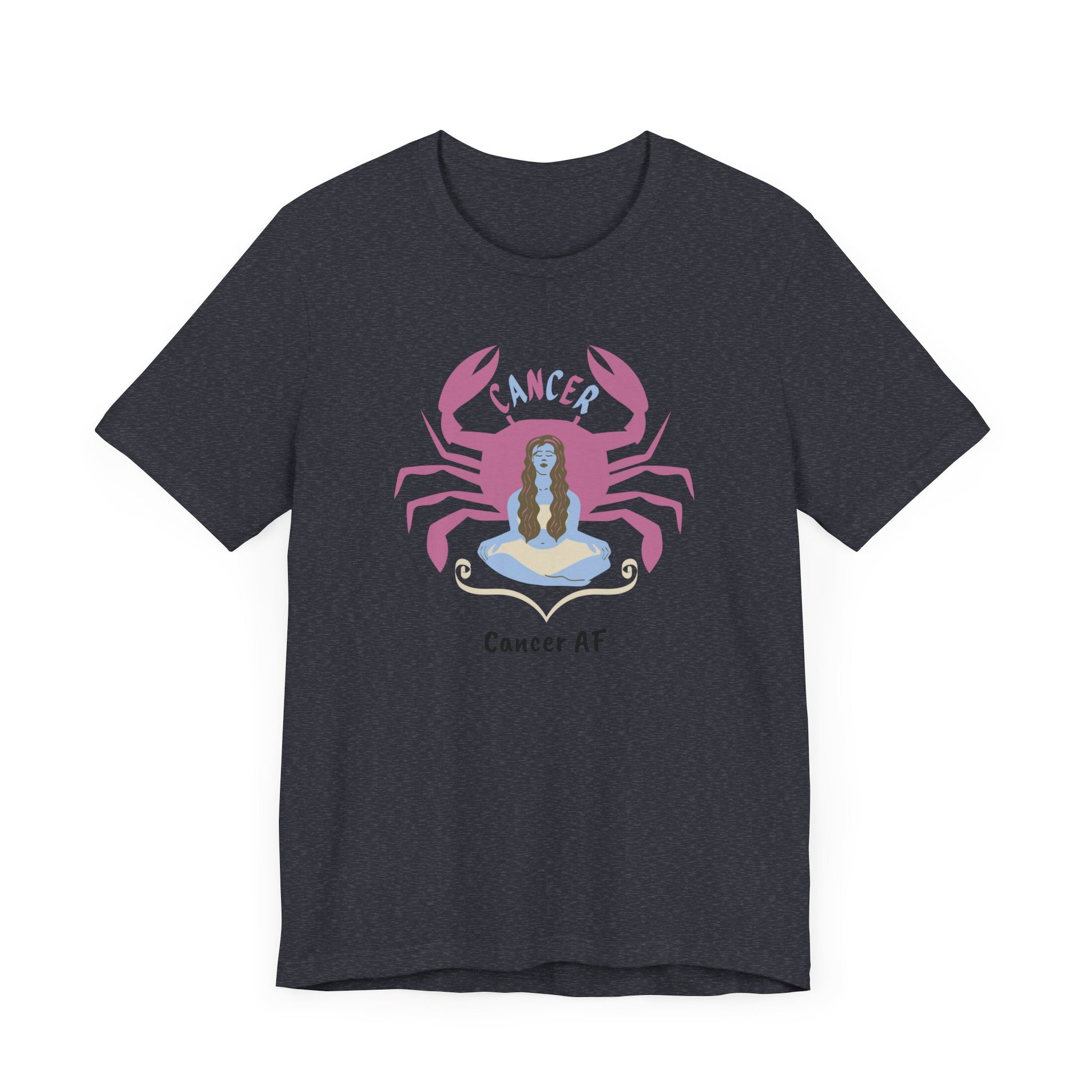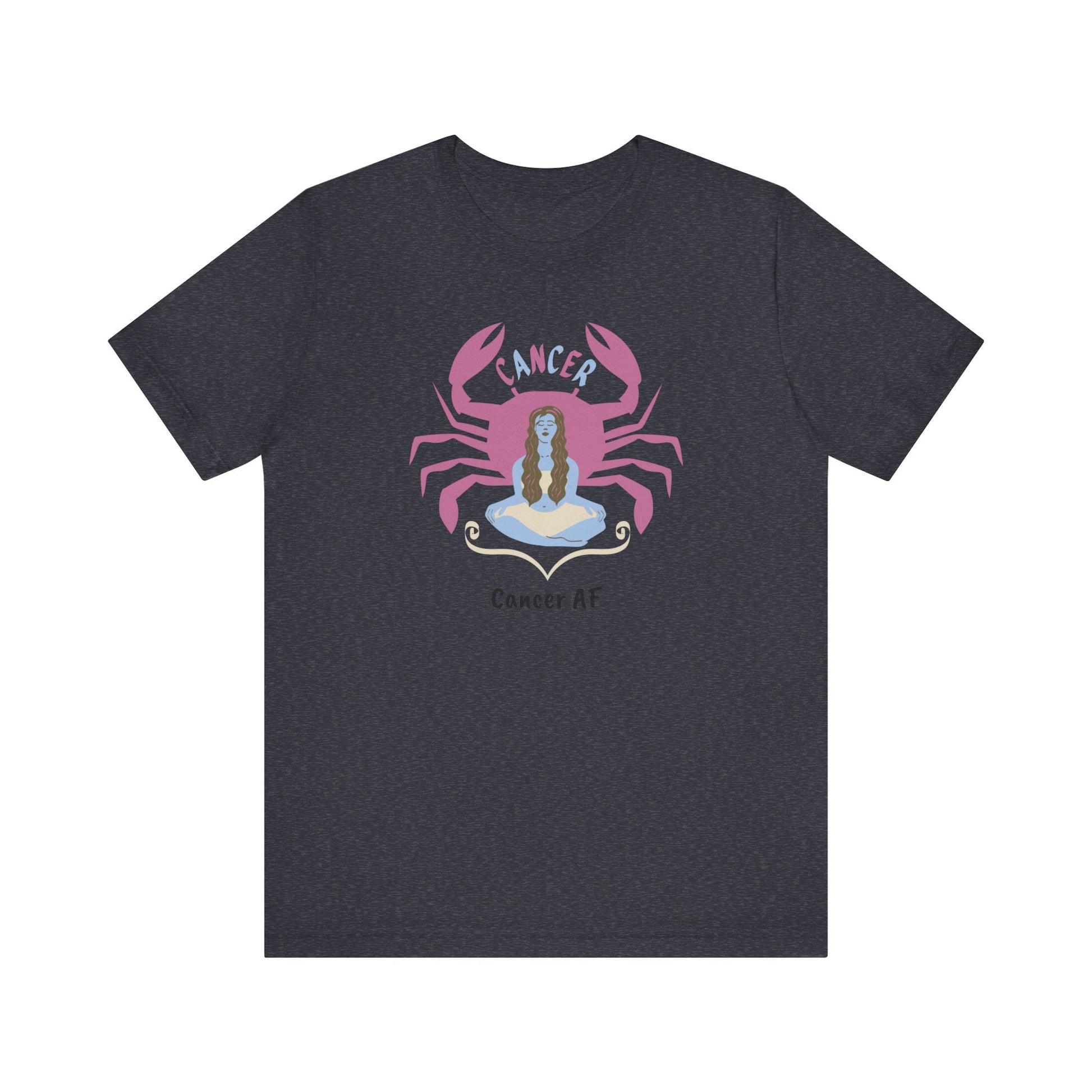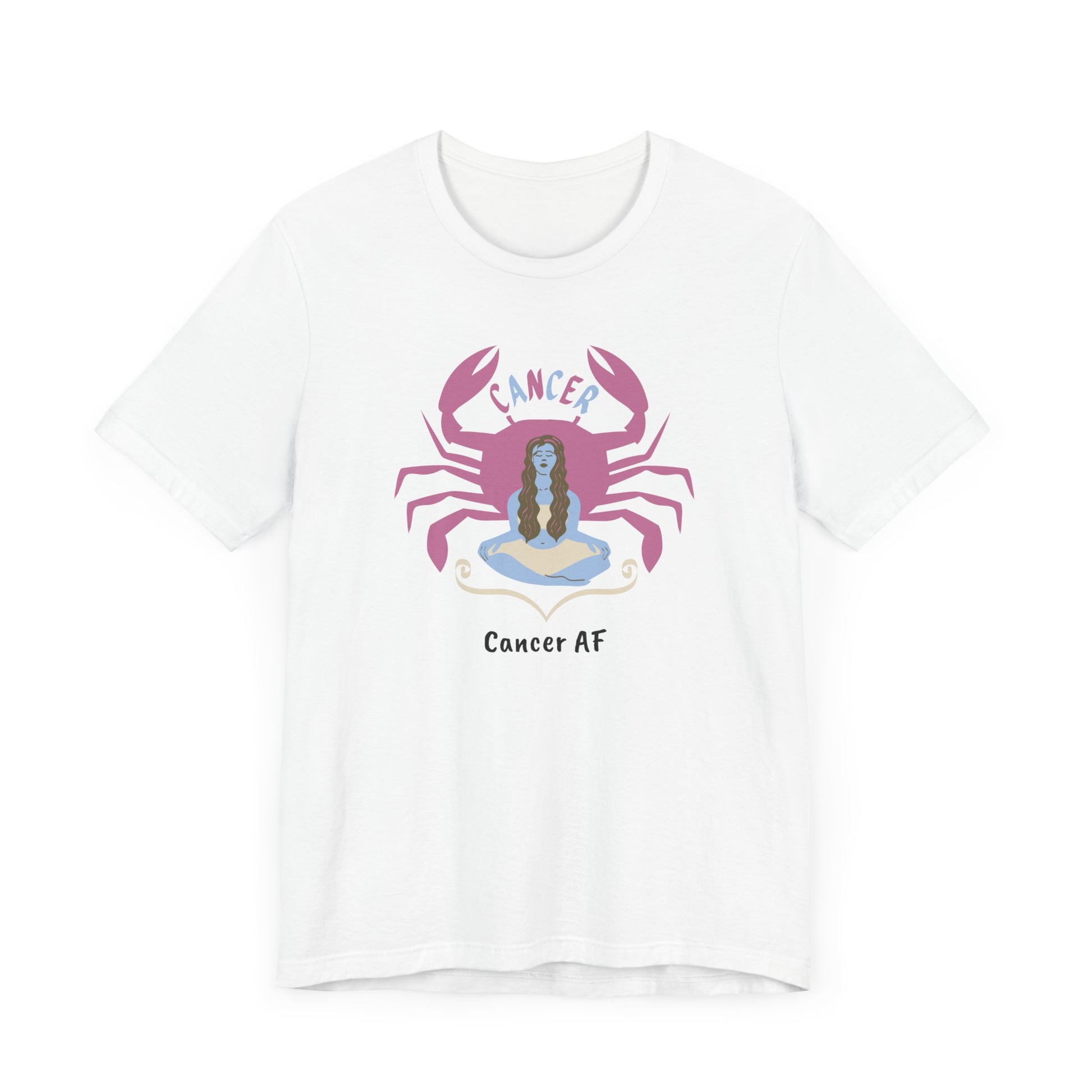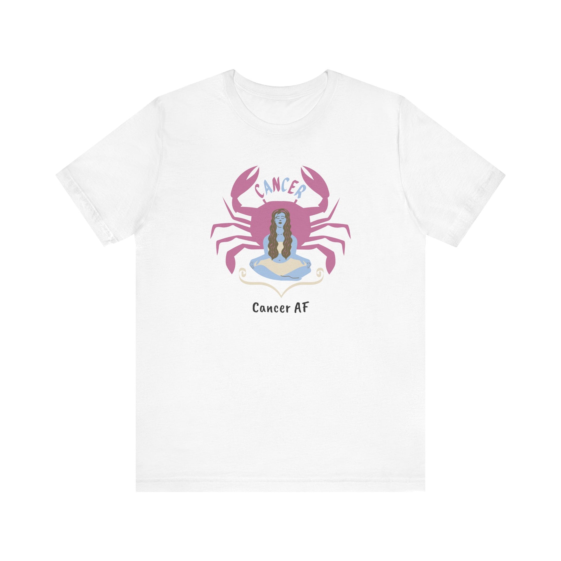 Cancer AF Lady and Crab White T-Shirt | Fun Cancer Crab T-Shirt | Zodiac T-Shirt | Zodiac Sign Shirt | Astrology | Star Sign | Unisex Jersey Short Sleeve Tee