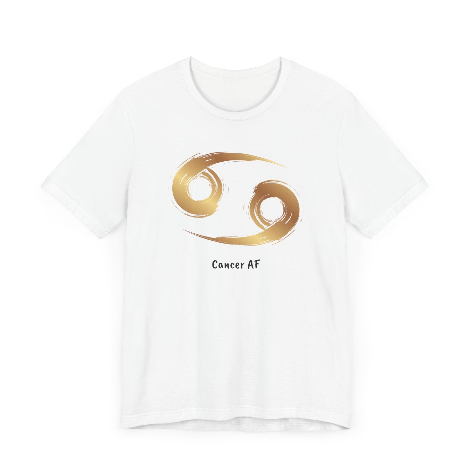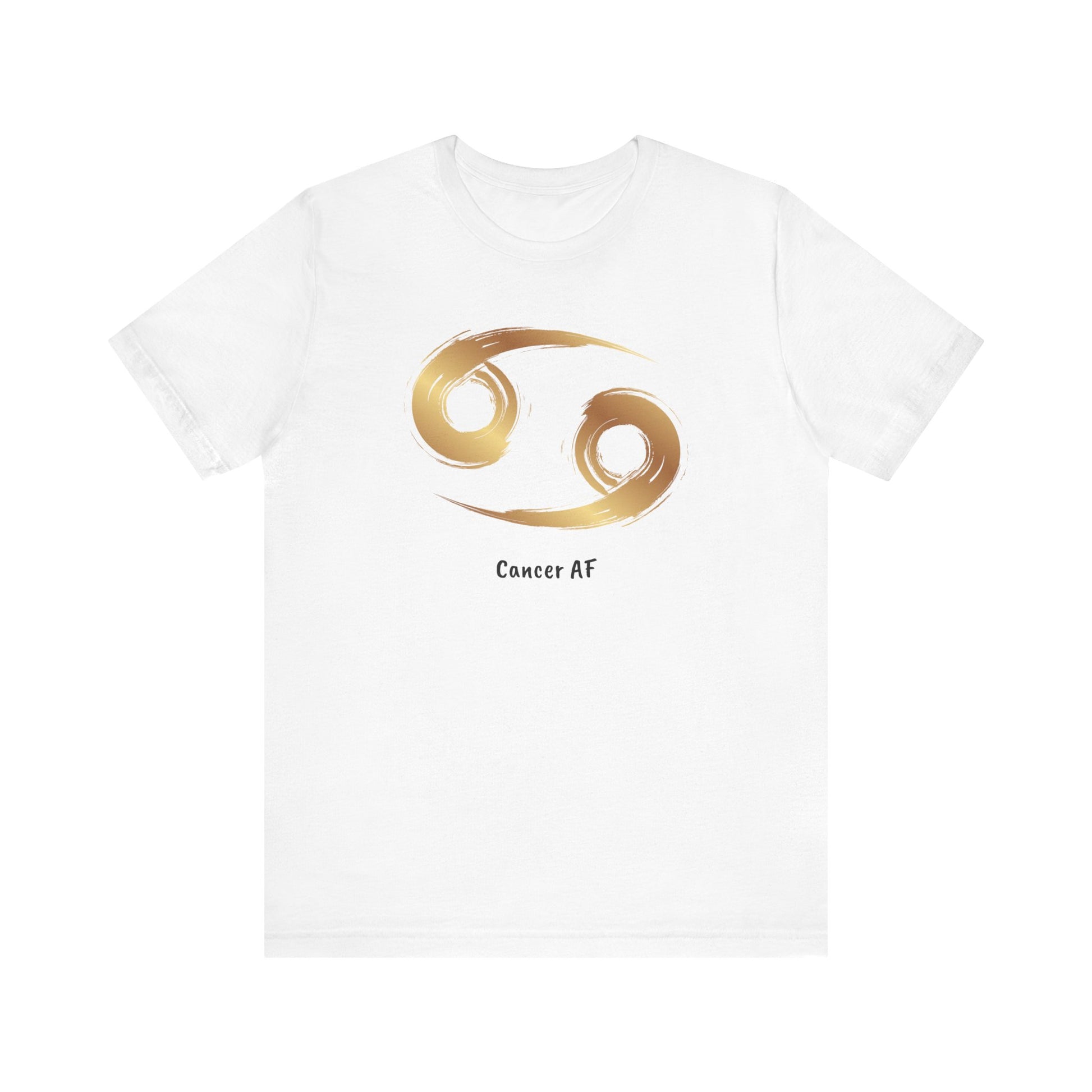 Cancer AF Symbol T-Shirt White | Fun Cancer T-Shirt | Zodiac T-Shirt | Zodiac Sign Shirt | Astrology | Star Sign | Unisex Jersey Short Sleeve Tee