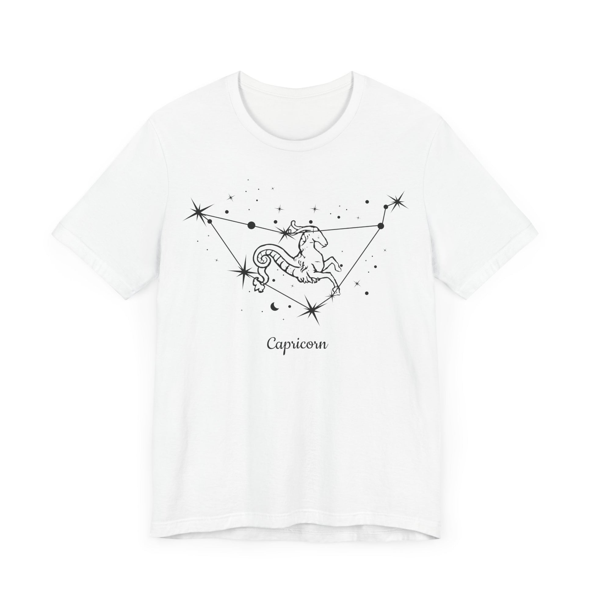 Capricorn Goat and Star Map Black T-Shirt | Fun Capricorn T-Shirt | Zodiac T-Shirt | Zodiac Sign Shirt | Astrology | Star Sign | Unisex Jersey Short Sleeve Tee