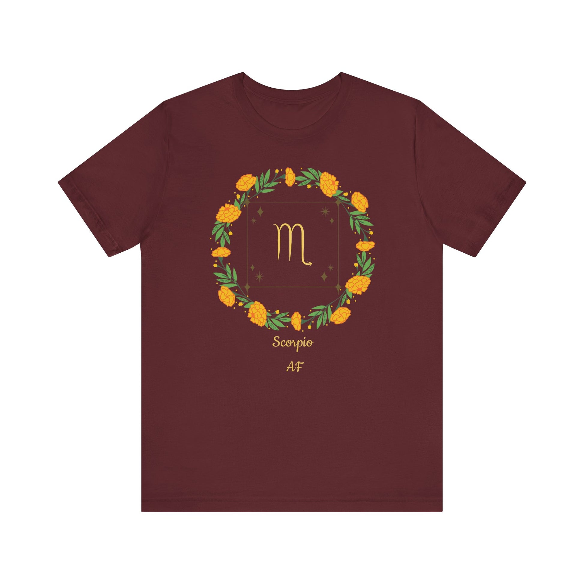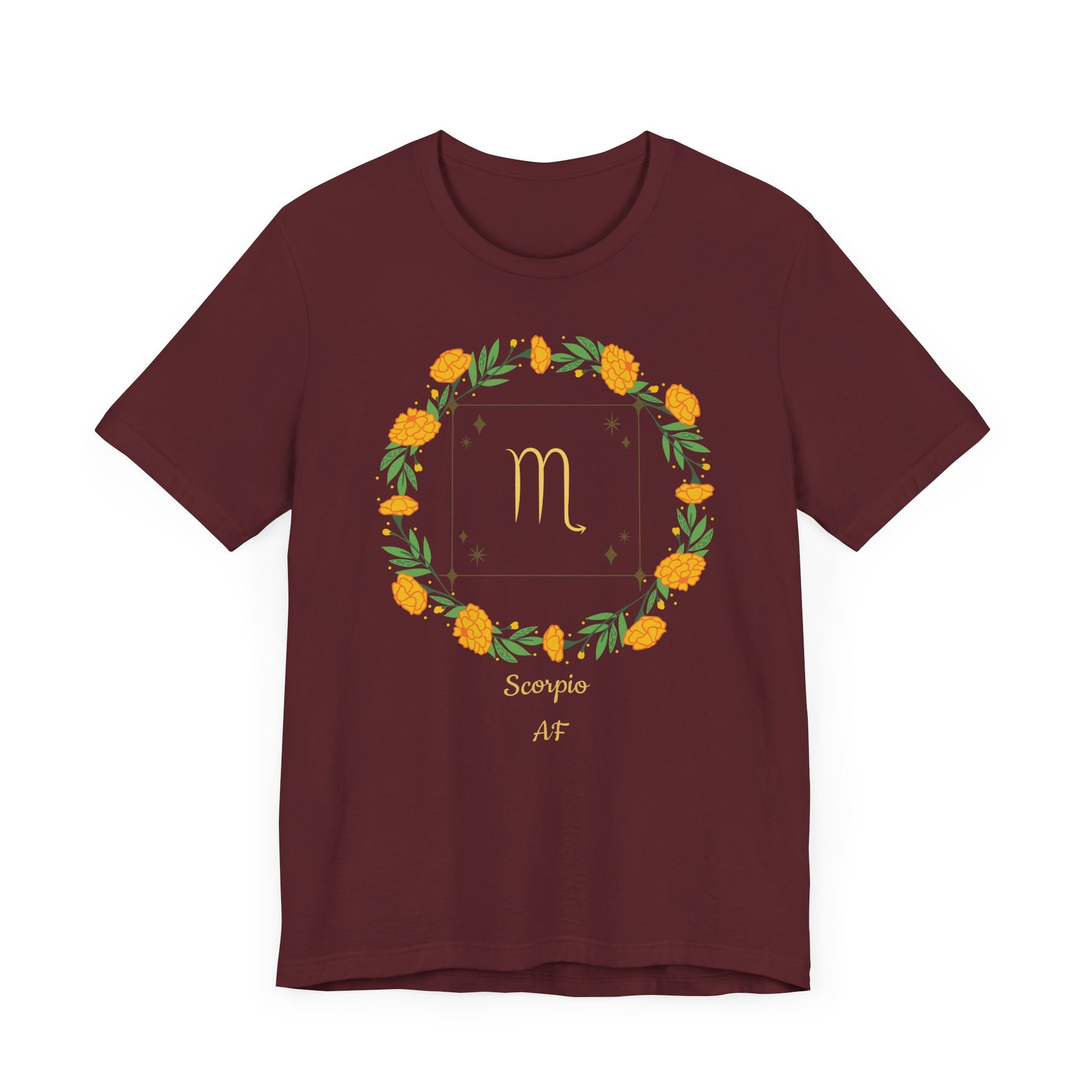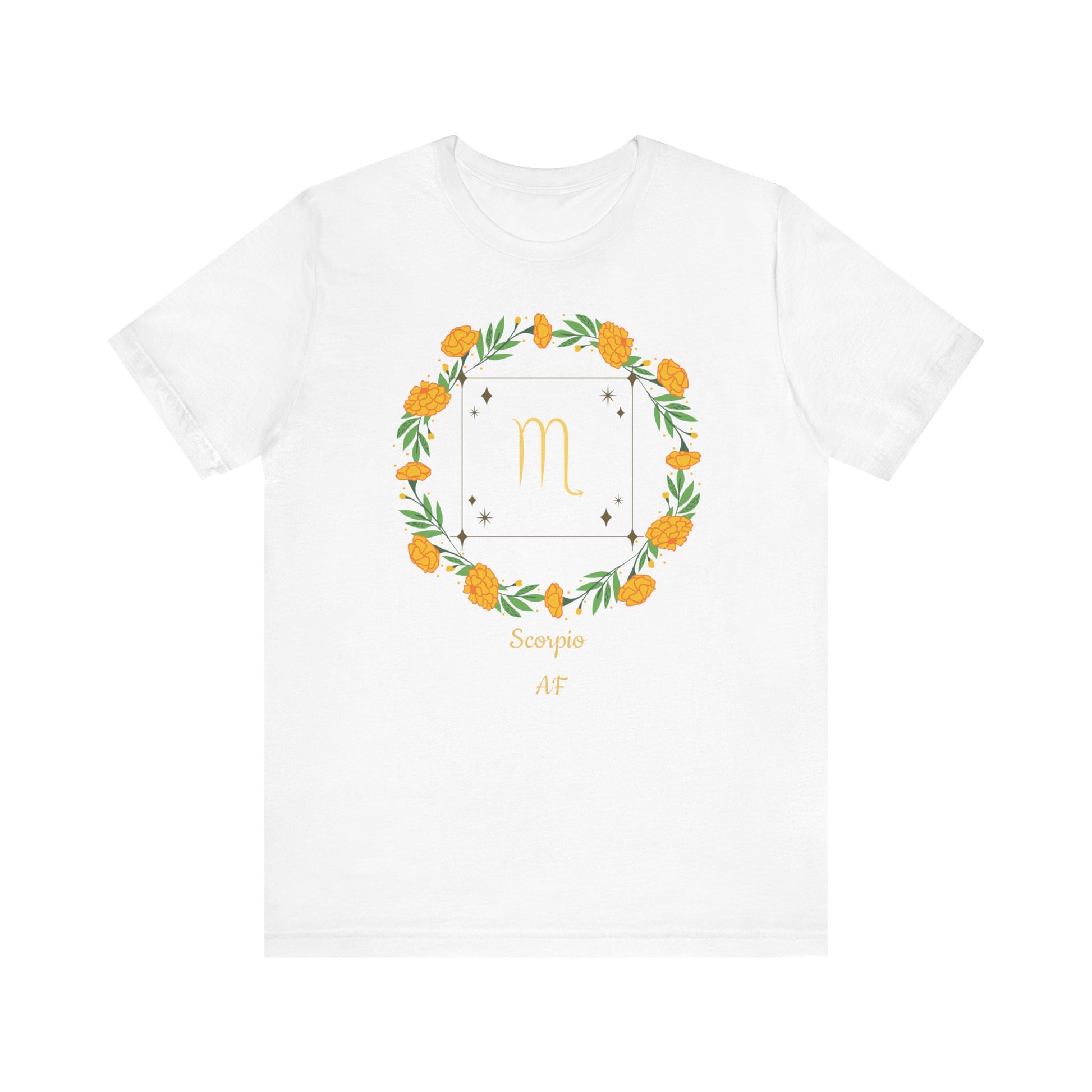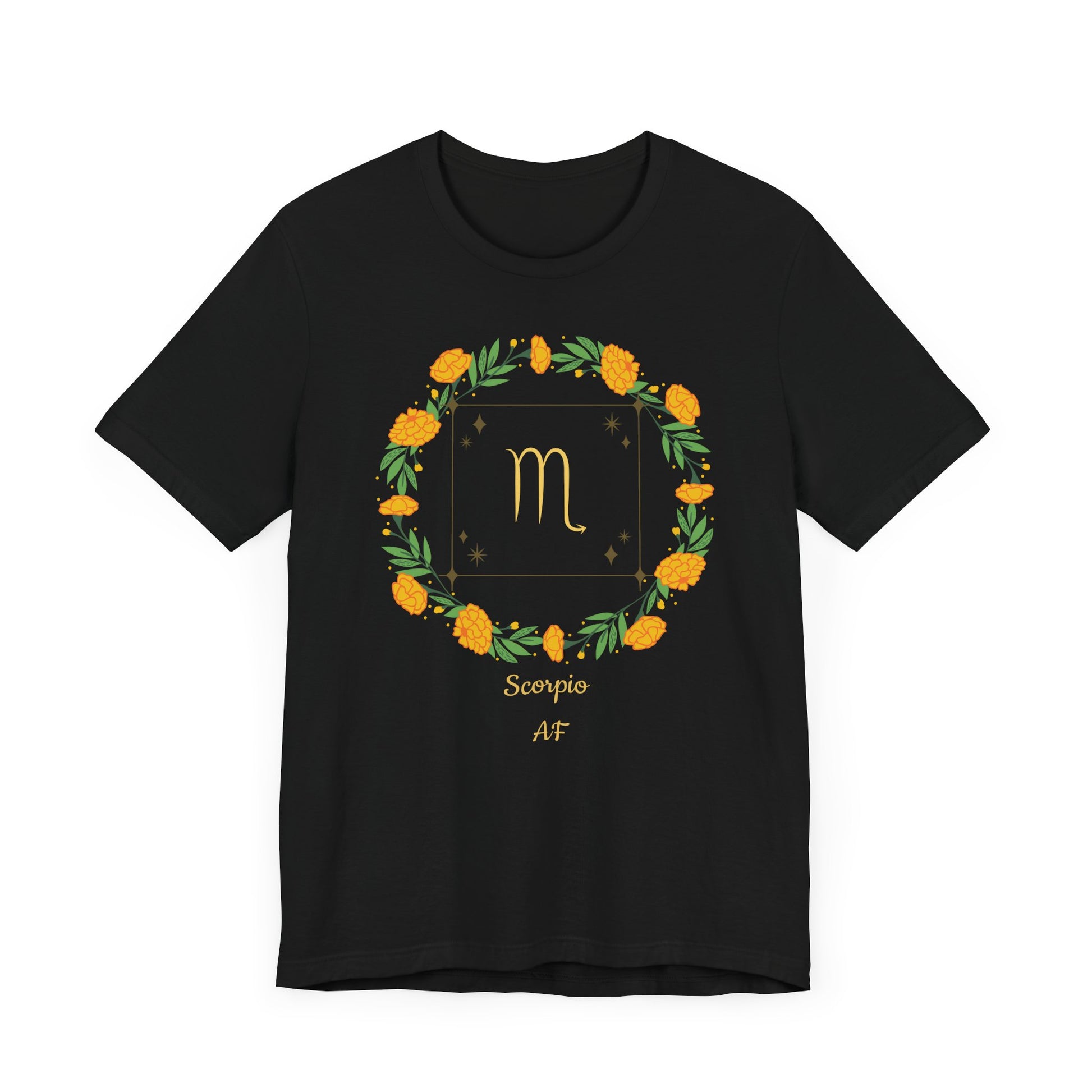 Scorpio AF Garland & Symbol T-Shirt | Fun Scorpio T-Shirt | Zodiac T-Shirt | Zodiac Sign Shirt | Astrology | Star Sign | Unisex Jersey Short Sleeve Tee