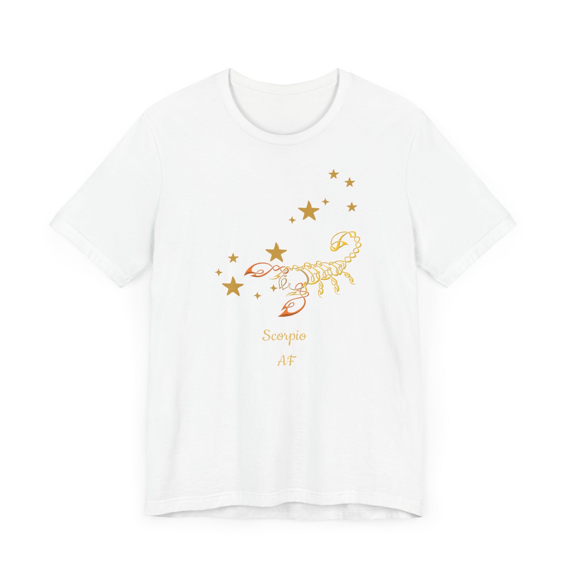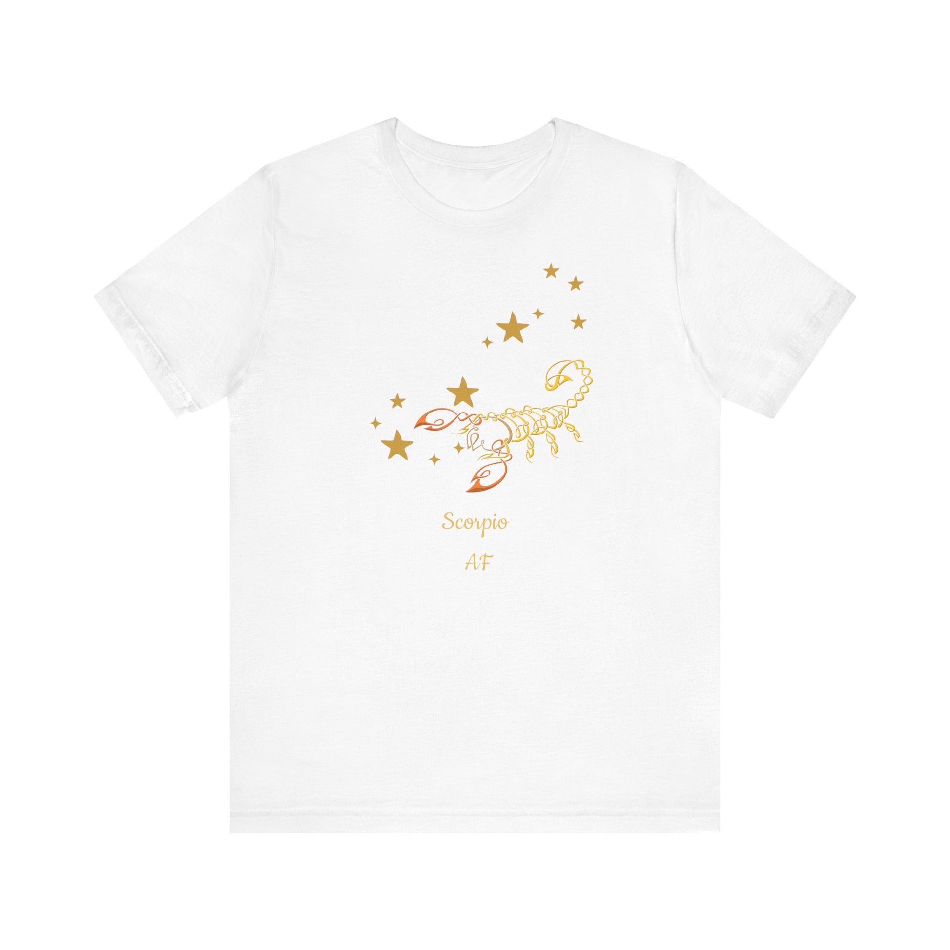 Scorpio AF Stars & Scorpion Symbol T-Shirt | Fun Scorpio T-Shirt | Zodiac T-Shirt | Zodiac Sign Shirt | Astrology | Star Sign | Unisex Jersey Short Sleeve Tee