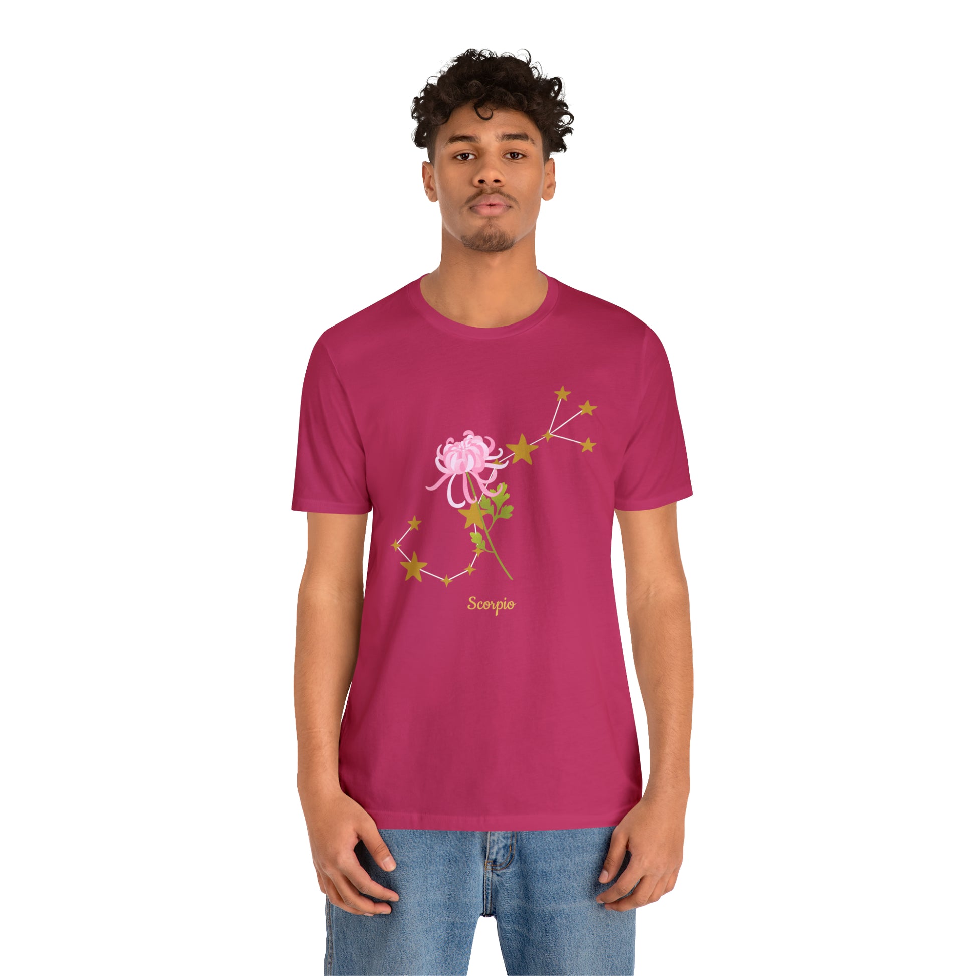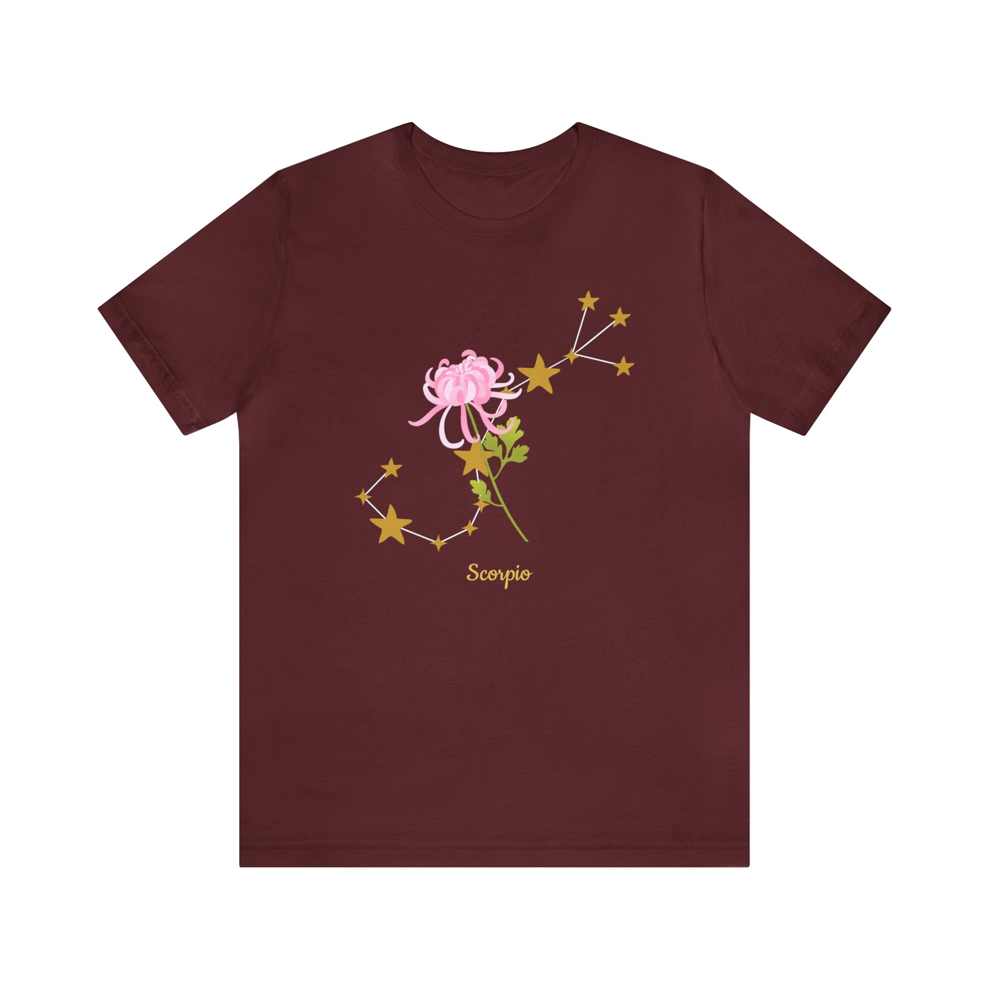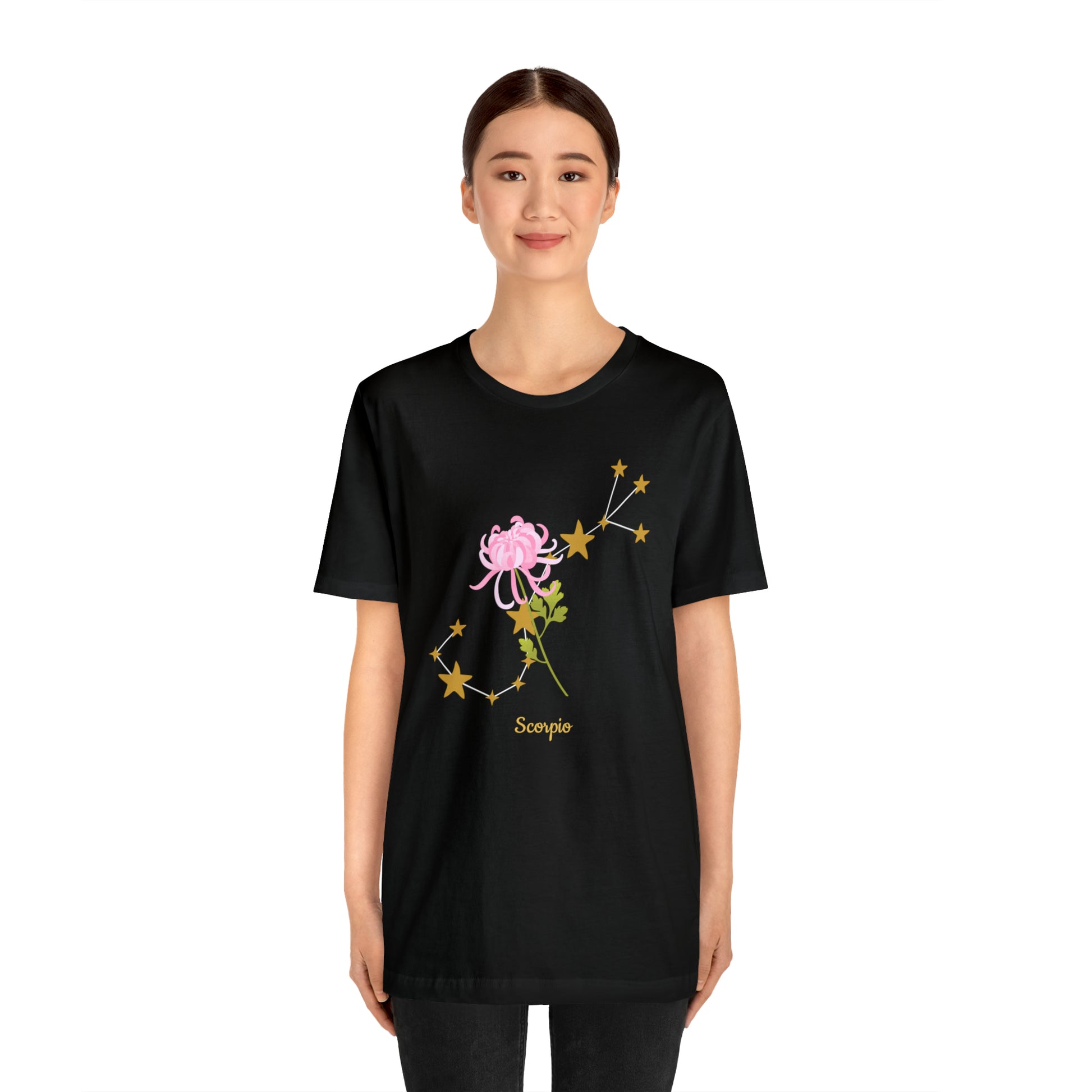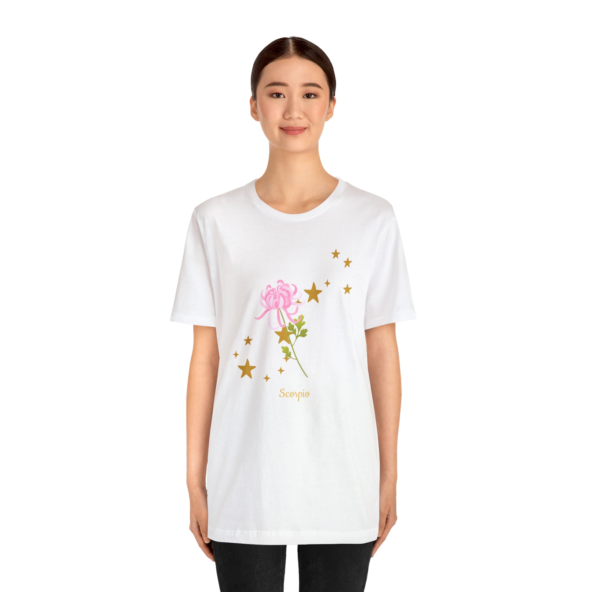 Scorpio Flower & Stars T-Shirt | Fun Scorpio T-Shirt | Zodiac T-Shirt | Zodiac Sign Shirt | Astrology | Star Sign | Unisex Jersey Short Sleeve Tee