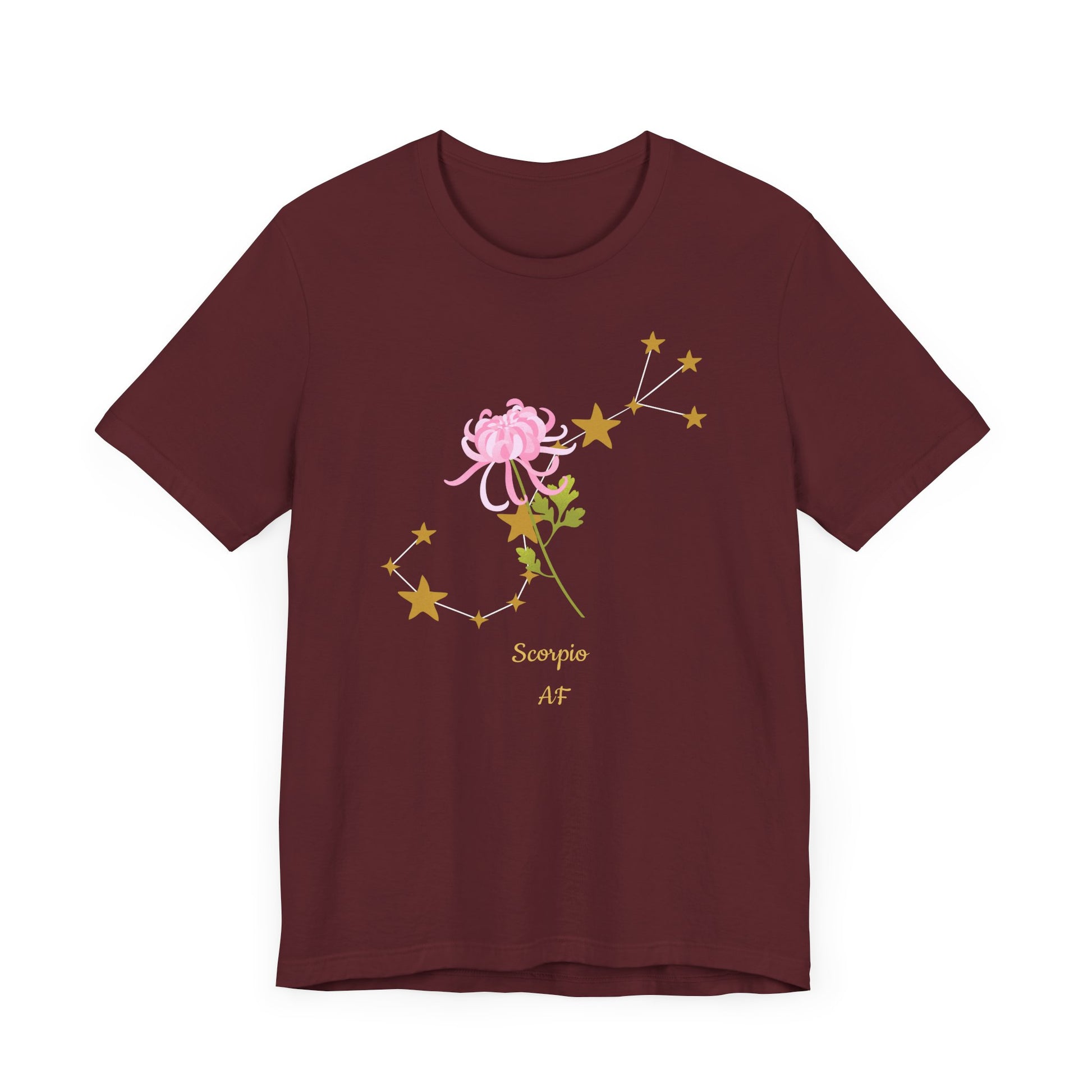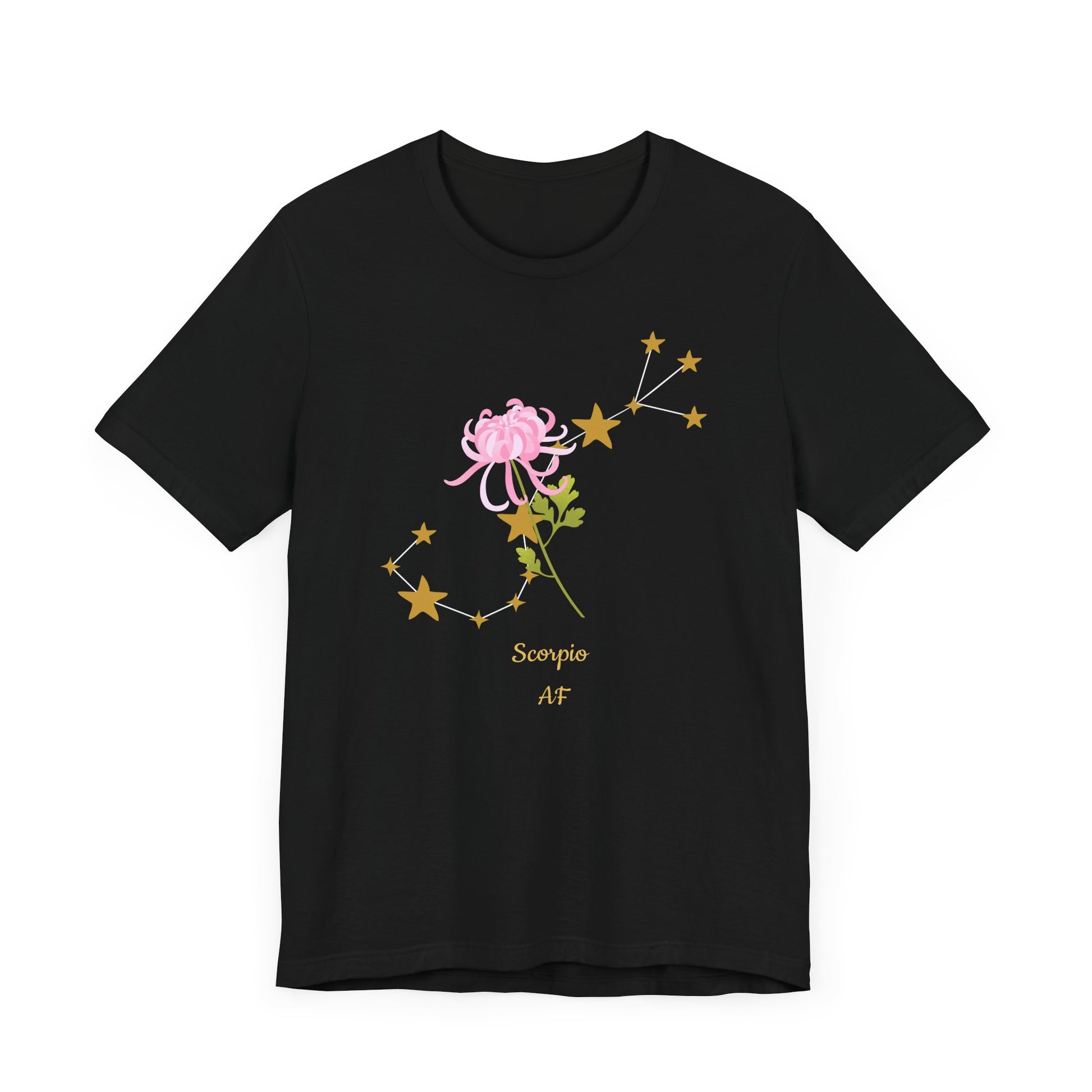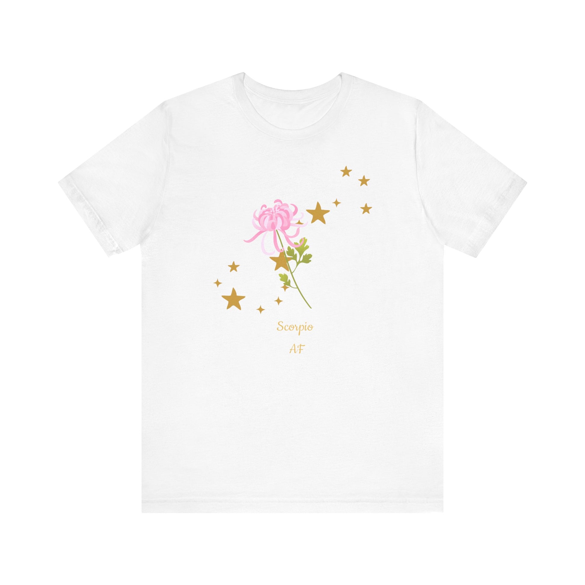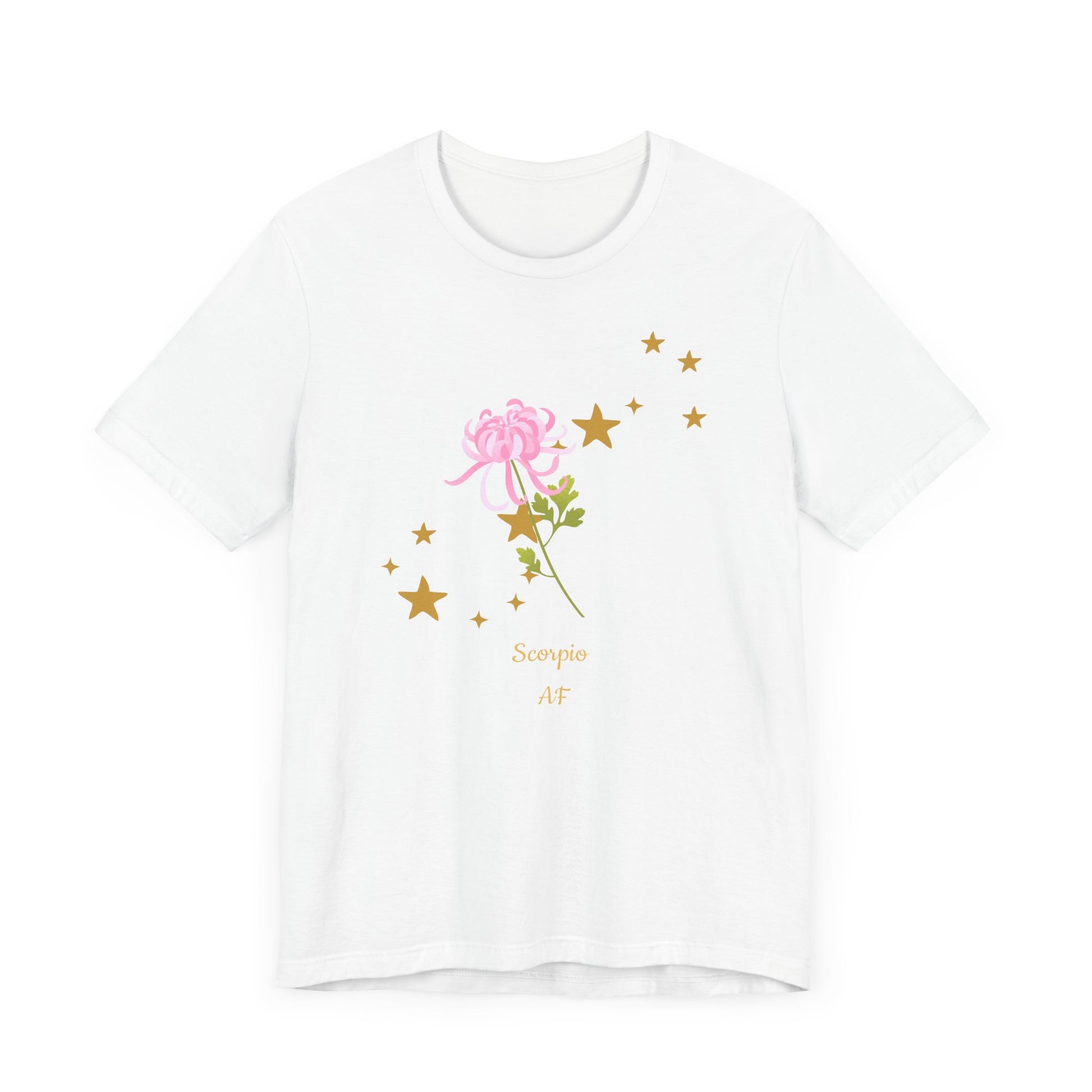 Scorpio Stars & Flower AF T-Shirt | Fun Scorpio T-Shirt | Zodiac T-Shirt | Zodiac Sign Shirt | Astrology | Star Sign | Unisex Jersey Short Sleeve Tee