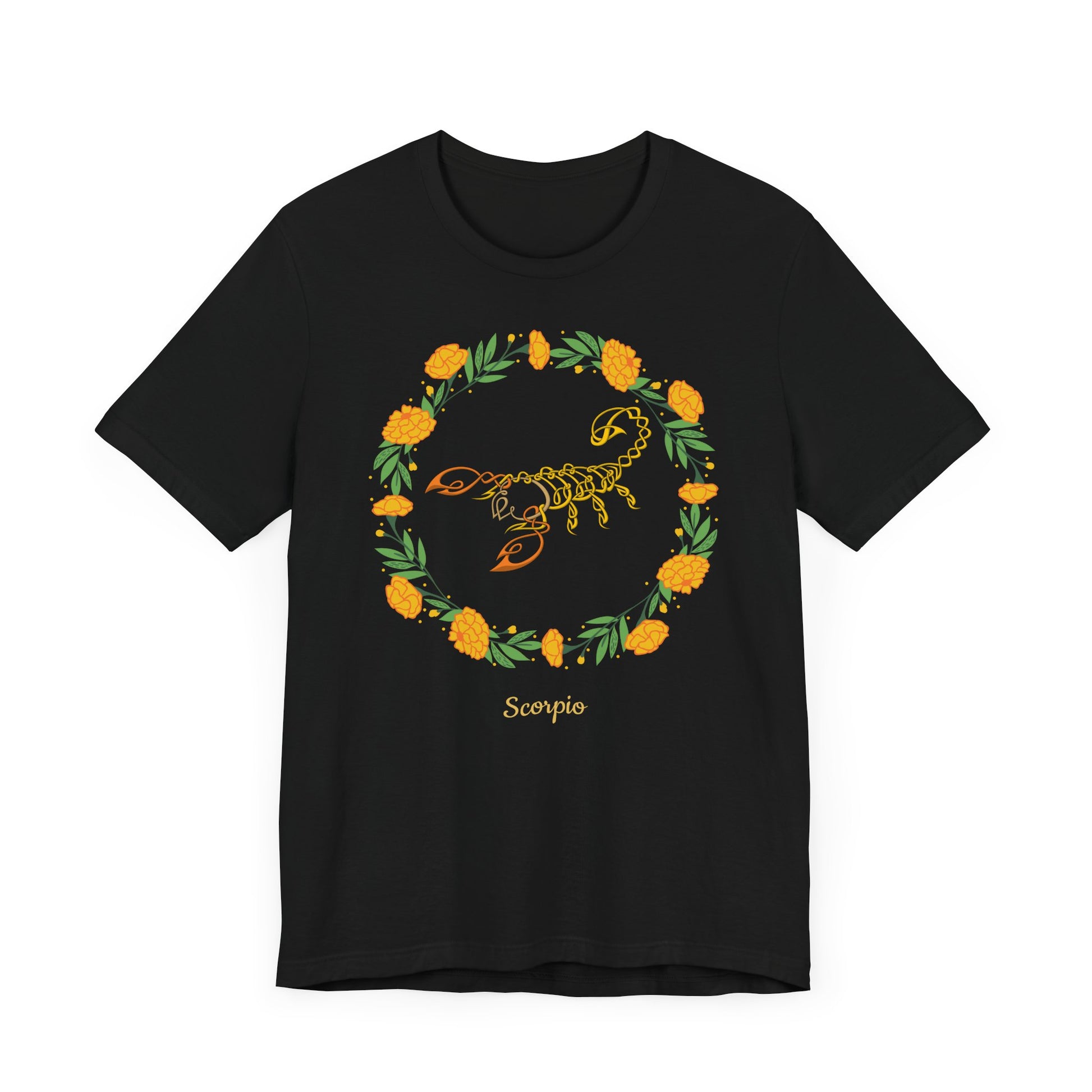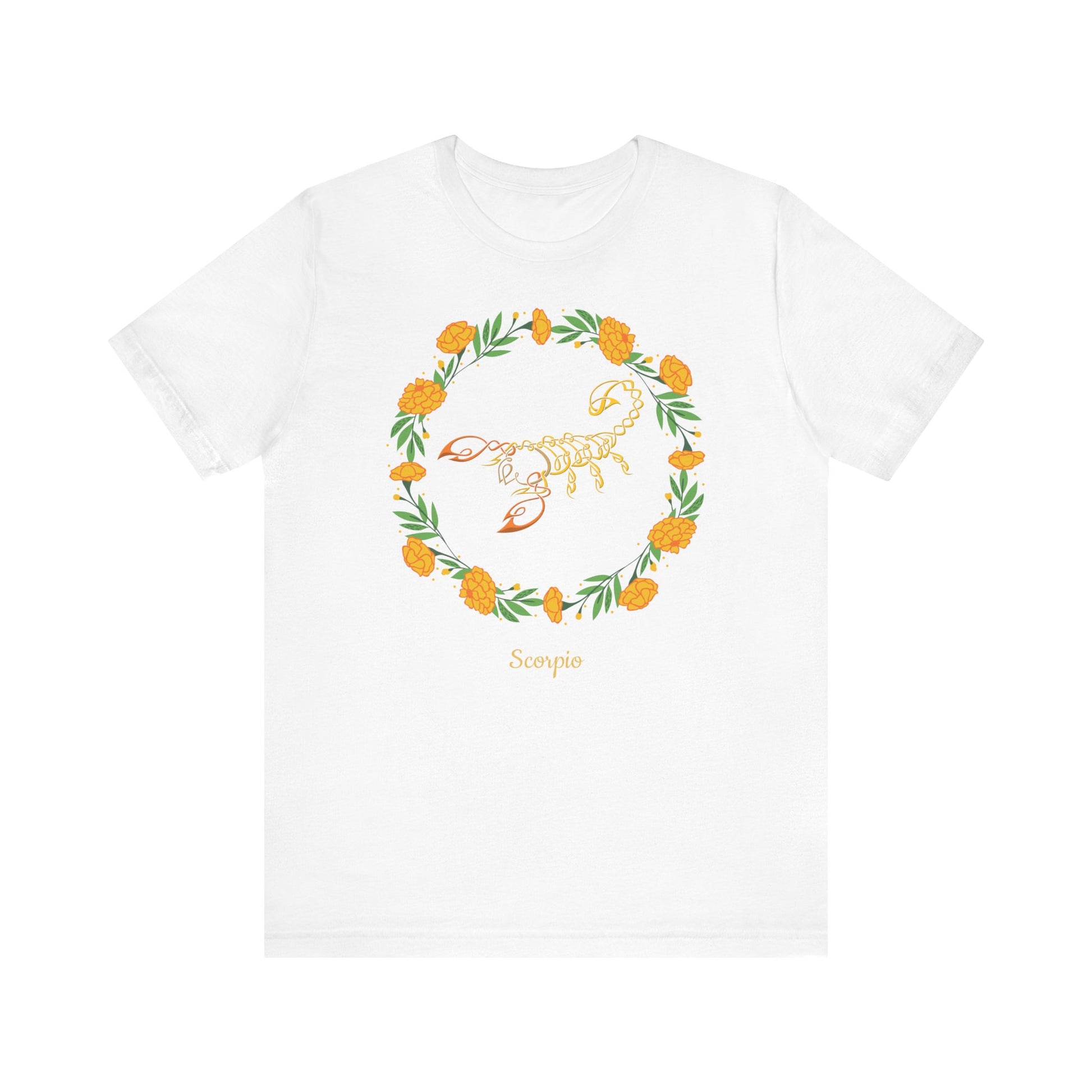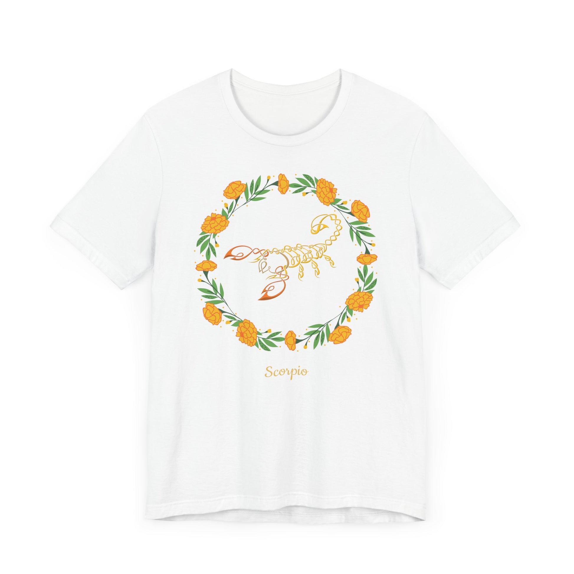 Scorpio Symbol & Garland T-Shirt | Fun Scorpio T-Shirt | Zodiac T-Shirt | Zodiac Sign Shirt | Astrology | Star Sign | Unisex Jersey Short Sleeve Tee